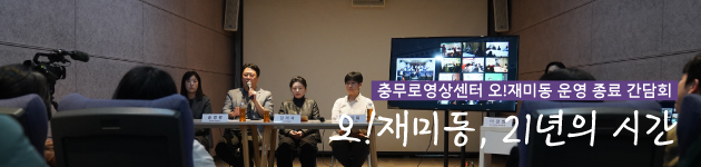오!재미동에서 영화를 놓고 사람들과 이야기를 나눈 지도 10년이 훌쩍 지났습니다. 가벼운 마음으로, 별 생각 없이 출근 도장 찍듯이 이어온 만남의 시간을 횟수로 세어 보니 어느덧 80번이 되었습니다. ‘그냥’은 힘이 셉니다. 일일이 거창한 의미를 부여하고 힘을 주어 진행하는 것들은 오래 가지 못하는 경우가 더 많았던 것 같습니다. 지나고 보니 길이 되고, 쌓이고 보니 의미가 되는 것들이 더 소중하게 빛나고 있습니다. ‘되돌아본다’는 건 그런 의미겠지요. ‘보는 것’에서 ‘하는 중’으로 영화에 대한 인식을 바꾸고 나니, 스크린의 다양한 존재 형태와 가능성이 함께 눈에 들어옵니다. 오!재미동에는 그런 집단 경험의 기억들이 고스란히 새겨져 있습니다. 그래서 이 공간이 쉬이 사라지는 걸 용납하기 힘듭니다. 이 공간을 매개로 이 기억이 이어질 수 있기 때문입니다. 종종 한국 사회는 쓸모와 편의를 기준으로 지나치게 쉽게 이 흔적들을, 거점들을 지우고 있다는 생각이 듭니다.