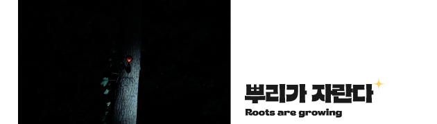 보안업체의 신입 지원인 규민(서승우)은 사고로 공사가 중지된 숲을 정찰하다 기이한 소리를 감지한다. 홀린 듯 이를 쫓아가지만 소리의 근원지에 관한 뚜렷한 증거를 발견하진 못한다. 사무실로 돌아온 규민은 숲 속에 무언가가 있었다고 보고하는데 CCTV로 이를 지켜보고 있던 선배 정훈(노언식)이 화면 상 아무런 문제가 없었다며 규민의 말에 귀를 기울이지 않는다. 급기야 자신의 상사 앞에서도 규민을 몰아세운다. 그럼에도 불구하고 규민이 주장을 굽히지 않자 결구 규민과 정훈이 숲으로 함께 걸어 들어가게 된다. 그리고 그들은 CCTV에 잡히지 않던 존재에 점점 가까워진다. 카메라가 비추지 않는 대상에 관해 우리는 어떻게 정의내릴 수 있을까. <뿌리가 자란다>는 프레임 안의 요소를 기반으로, 프레임 밖의 존재와 사물에 관한 상상력을 극대화하는 영화다. 일터에서의 CCTV는 현장을 기록하는 동시에 노동자를 감시하는 매개체로 기능한다. CCTV 화면은 장소의 안전함과 노동자의 성실도를 파악하는 기준으로 작동하는 한편 이것만으로는 모든 진실을 파악할 수 없다는 것을 영화는 분명하게 언급한다. <뿌리가 자란다>는 CCTV 화면과 실제 공간의 모습을 번갈아 보여주며 밤의 숲을 배경으로 조명과 사운드를 섬세하게 배치해 공포감을 조성한다. 이를 통해 미스터리 스릴러의 장르적 특성을 유지하면서도 프레임 안과 밖의 교류를 감각적으로 그려낸다. ■조현나